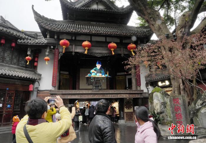 图为乘客正在锦里特性街区品味4川古板好食。中新社记者 安源 摄